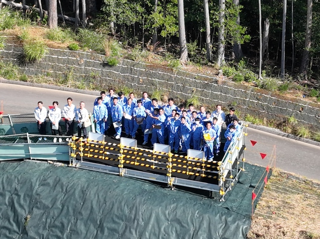 10月17日に愛知県立岡崎工科高等学校(都市工学科)1年生の皆さんに「令和4年度 設楽ダム松戸地区整備工事」の現場を見学していただきました。