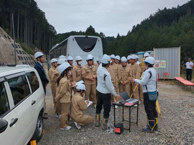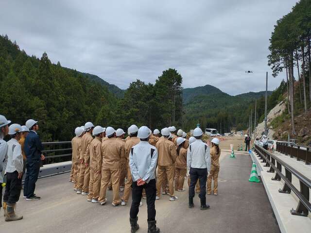10月21日に愛知県立岡崎工科高等学校(都市工学科)1年生の皆さんに「令和6年度 設楽ダム設楽根羽線長江地区道路建設工事」の現場を見学していただきました。