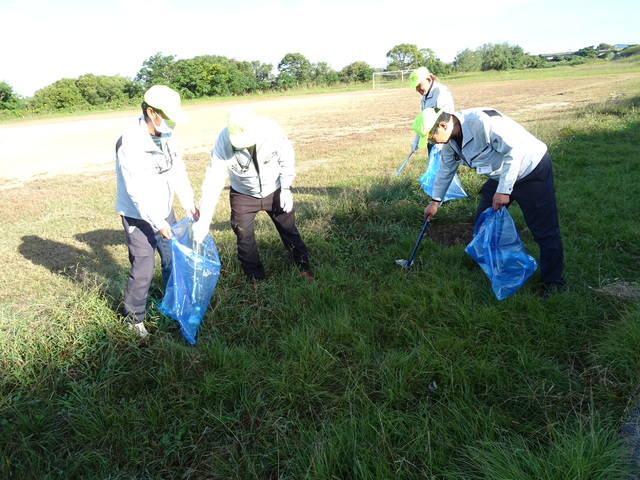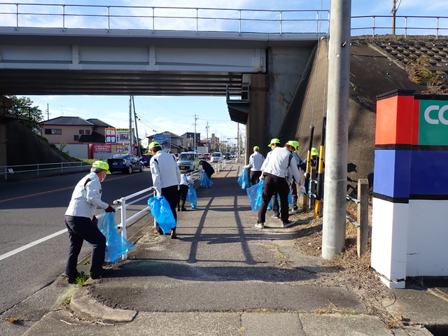 会社の前の道路及び矢作川左岸(JR東海道線~渡橋堤防)について道路清掃を実施しました。