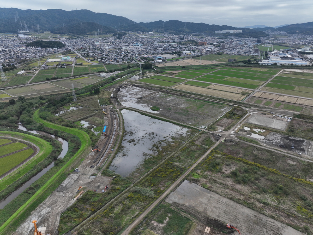 - 広田川の氾濫を防ぐための菱池遊水地整備事業の一環で、掘削による土砂搬出工事を行います。