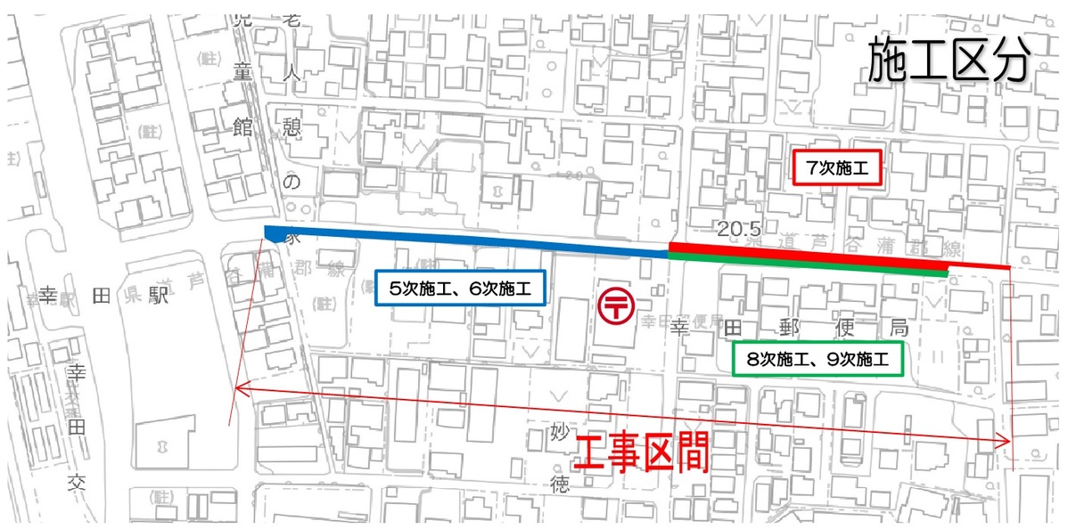 この工事は芦谷蒲郡線の拡幅工事に伴う道路の整備を行う工事です。